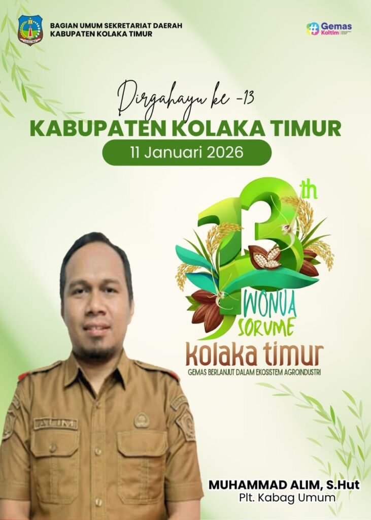 Ulasfaktasultra.com, Koltim –Pemerintah Daerah Kabupaten Kolaka Timur (Koltim), menggelar Upacara Peringatan Hari Ulang Tahun (HUT) ke-13, tahun...