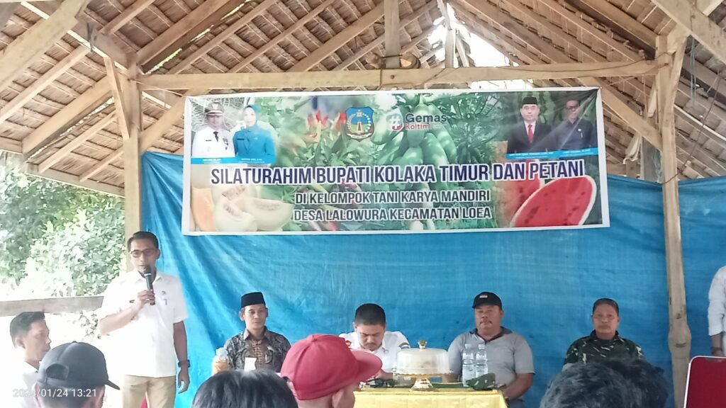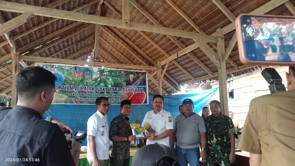 Ualsfaktasultra.com, Koltim. Bupati Koltim Abd Azis SH MH, berkunjung langsung sekaligus silaturahmi dan panen buah melon pada Kelompok Tani (Poktan) Karya Mandiri di Desa Lalowura Kecamatan Loea, Rabu (24/1/2024) siang.