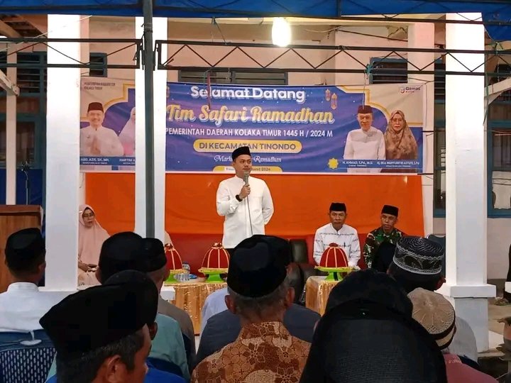 Ulasfaktasultra.com, Koltim- Gelaran safari Ramadhan 1445 H Tahun 2024 M, Pemda koltim di kecamatan Tinondo, Bupati Koltim Abd Azis SH MH, menyapa warga dan menyerahkan sejumlah bantuan Sabtu 16/3/2024.