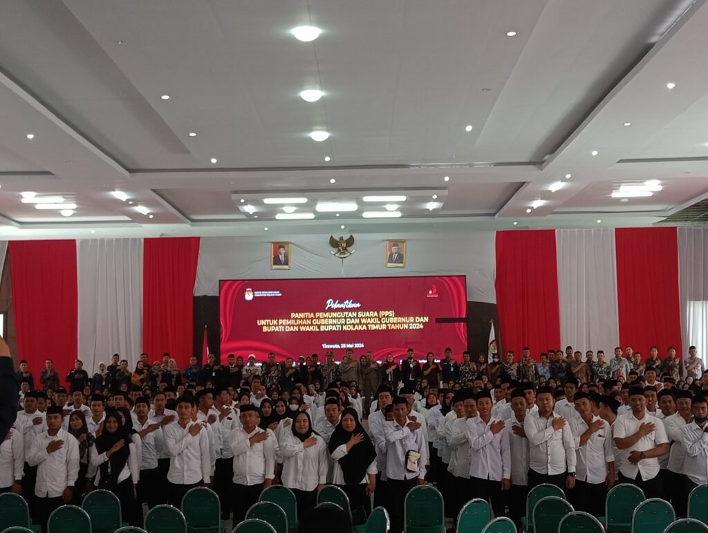 Ulasfaktasultra.com, Koltim- Komisi Pemilihan Umum kabupaten Kolaka Timur (KPU Koltim) Resmi Melantik 397 anggota Panitia Pemungutan Suara (PPS) yang terbagi di 133 desa/kelurahan dari 12 Kecamatan Se – Koltim. Minggu 26/5/2024. Bertempat di aula Pemda Koltim, kompleks perkantoran desa lalingato kecamatan tirawuta.