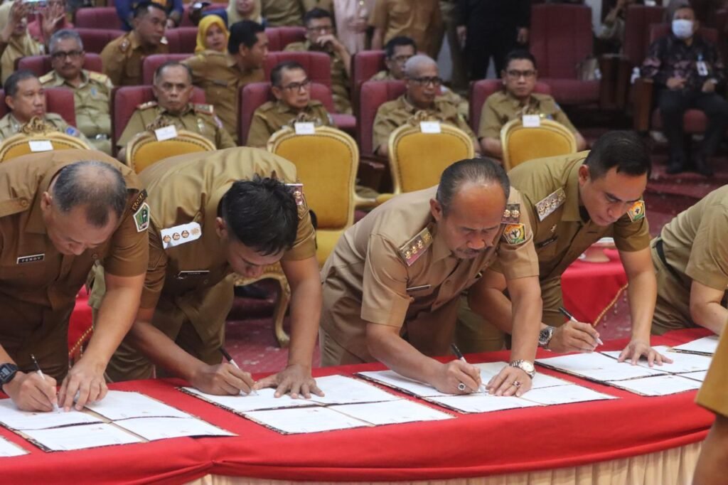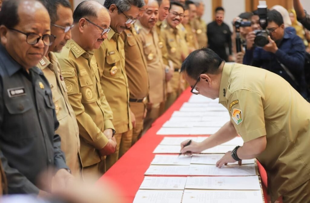 Ulasfaktasultra.com, Kendari -Pjs Bupati Koltim Ir Ari Sismanto, menghadiri Kegiatan Penandatanganan Kesepakatan Bersama Gubernur dengan Bupati/Walikota Se-Sultra Mengenai Optimalisasi PAD Sektor Pajak Daerah, di Kantor Gubernur Sulawesi Tenggara Selasa (15/10/2024).