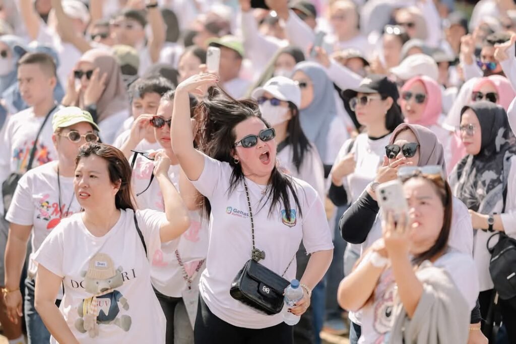 Peserta dari berbagai kalangan ini, mulai dari anak-anak, remaja, hingga orang dewasa, tampak menikmati setiap momen. Sorak-sorai dan tawa mengisi udara saat mereka berjalan dengan santai dan saling melemparkan bubuk warna, menciptakan pemandangan yang spektakuler serta penuh warna.