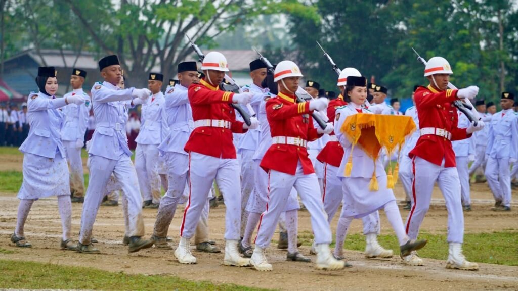 Meski peringatan hari kemerdekaan Indonesia yang kita laksanakan hari ini di guyur hujan kata Plt Bupati, namun semangat nasionalisme kita semua tidak surut dalam melaksanakan upacara HUT RI Ke-80 ini.